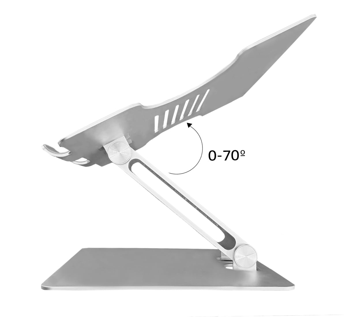 - Nastavitelný v libovolném úhlu až do 70° a možností mít notebook v rovině nebo vyvýšený až o 283 mm
