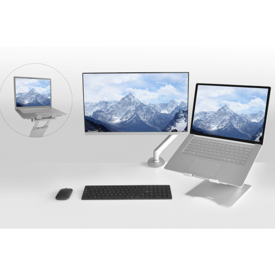 - Nastavitelný v libovolném úhlu až do 70° a možností mít notebook v rovině nebo vyvýšený
