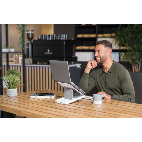 Používání stojanu na notebook Fellowes BREYTA podporuje zdravější pozici při práci s notebookem. Redukuje napětí zad, uvolňuje napětí krční páteře a usnadňuje zachování správného držení těla. Vhodné do kanceláře i domácnosti. Inovační konstrukce.