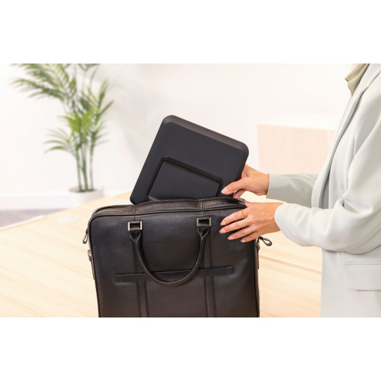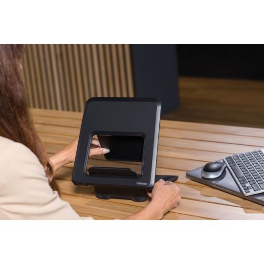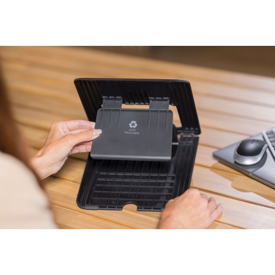 Používání stojanu na notebook Fellowes BREYTA podporuje zdravější pozici při práci s notebookem. Redukuje napětí zad, uvolňuje napětí krční páteře a usnadňuje zachování správného držení těla. Vhodné do kanceláře i domácnosti. Inovační konstrukce.