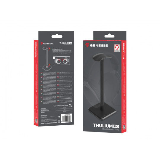 GENESIS Thulium 100 je stojan na sluchátka, který ochrání vaše zařízení před poškozením a umožní vám ho snadno začlenit do jakéhokoli stojanu. Díky klasickému, elegantnímu designu, kvalitním materiálům a montáži bez použití nářadí, díky níž lze GENESIS Thulium 100 složit během několika sekund. Zde je to pravé místo pro vaše sluchátka.