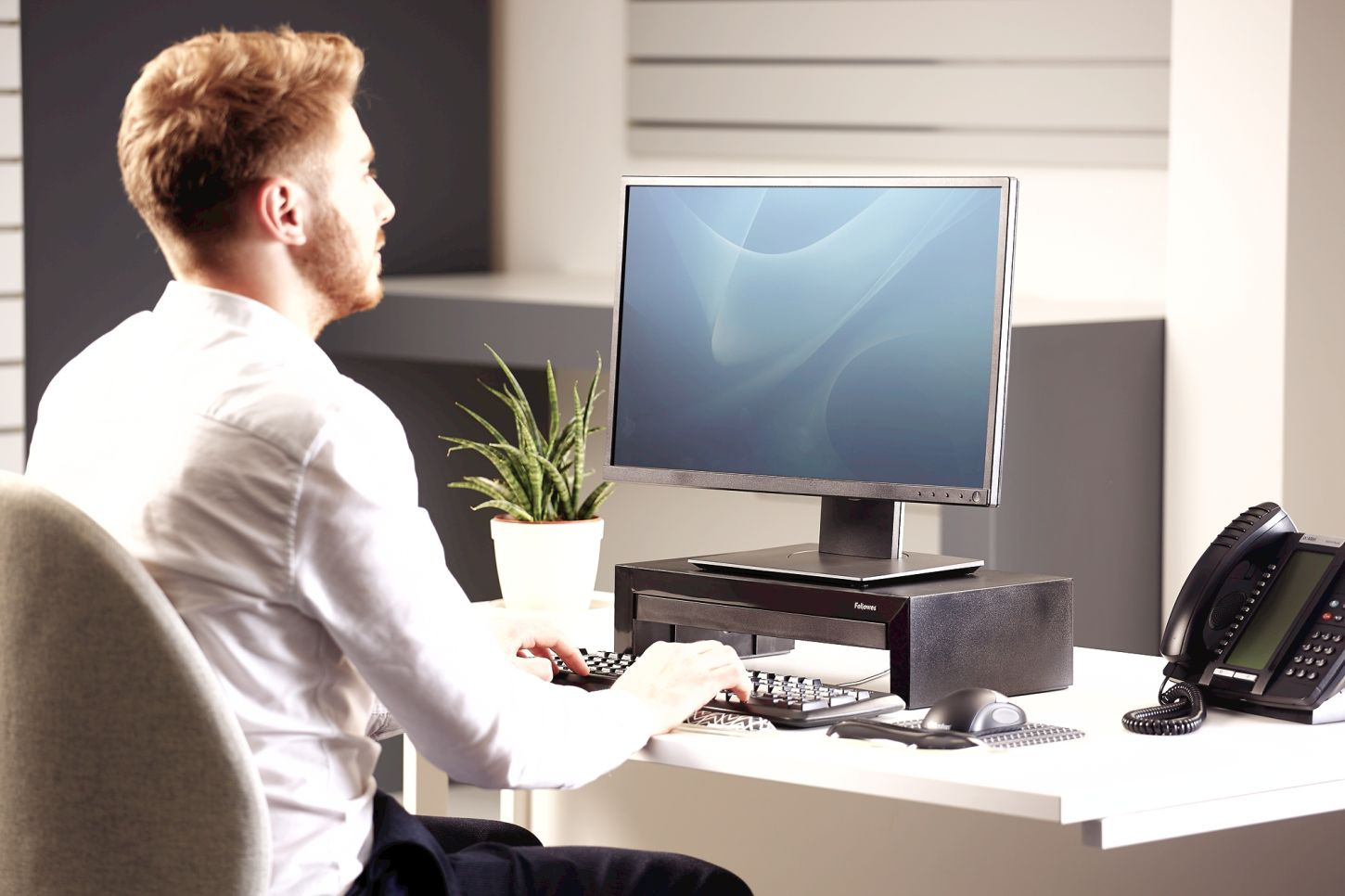 Používáním stojanu pod monitor Fellowes Designer Suites předcházíte bolesti šíje a krční páteře. Umožňuje nastavení monitoru do úrovně očí, čímž zmírňuje svalové napětí ramen a krku. Vhodné do kanceláře i domácnosti.
