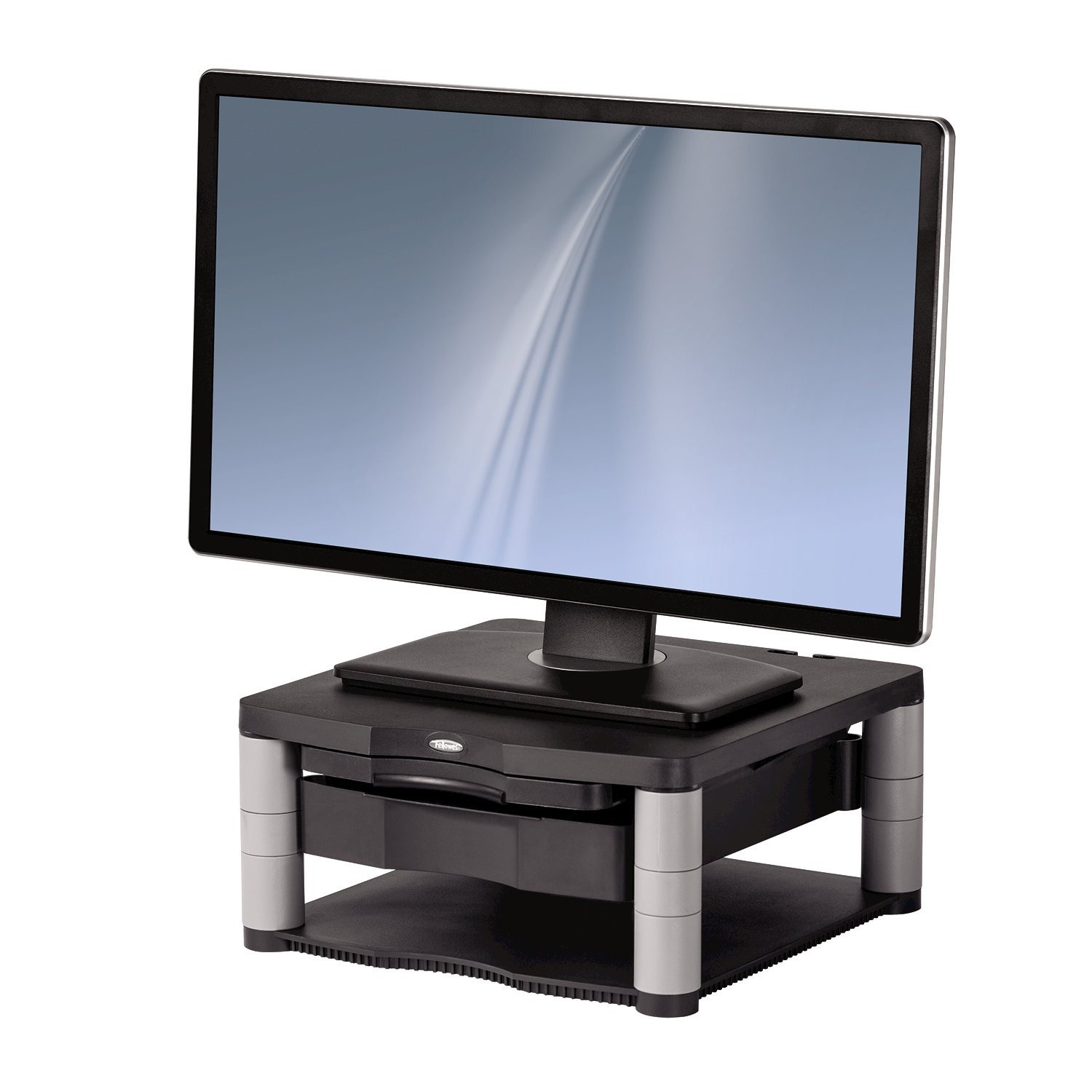 Používáním stojanu pod monitor Fellowes PREMIUM PLUS předcházíte bolesti šíje a krční páteře. Umožňuje nastavení monitoru na úroveň očí, čím zmírňuje svalové napětí ramen a krku. Vhodné do kanceláře i domácnosti. Určen pro LCD / TFT monitory do velikosti 21" a maximální hmotnosti do 36 kg.
