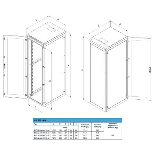 Stojanový rack 42U 600x800 RIE IP54 RAL7035