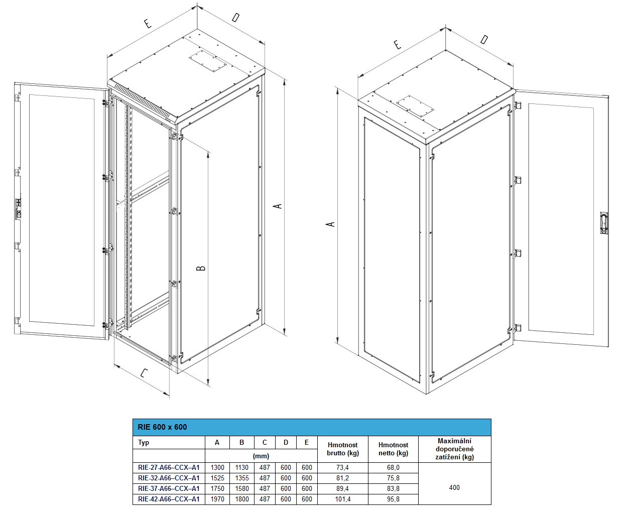 Stojanový rack 42U 600x800 RIE IP54 RAL7035