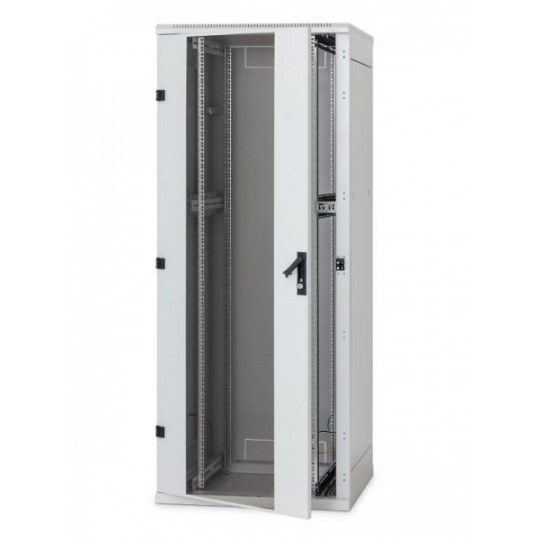 Robustní rozvaděč se svařovanou pevnou konstrukcí a skleněnými dveřmi. Má odnímatelné bočnice pro snadnější montáž. Odstranitelný je také zadní kryt. Rozvaděč vyhovuje specifikaci IP20, tedy brání vniknutí drobných předmětů do útrob. Nosnost 400 kg.