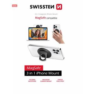 SWISSTEN 3in1 MagStick IPHONE MOUNT je praktický držák (kompatibilní s MagSafe) s kroužkem na prst, stojánkem a držákem na uchycení na MacBook. Baleno v krabičce SWISSTEN.