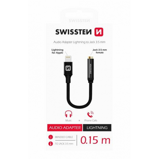 SWISSTEN AUDIO ADAPTÉR TEXTILE LIGHTNING /JACK(samice) 0,15 M ČERNÝ