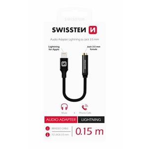 SWISSTEN AUDIO ADAPTÉR TEXTILE LIGHTNING /JACK(samice) 0,15 M ČERNÝ