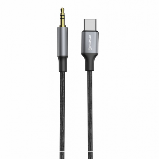 SWISSTEN AUDIO ADAPTÉR TEXTILE USB-C (samec) / 3,5 mm JACK (samec) 1,5M ČERNÝ (nahrazuje 73501303)