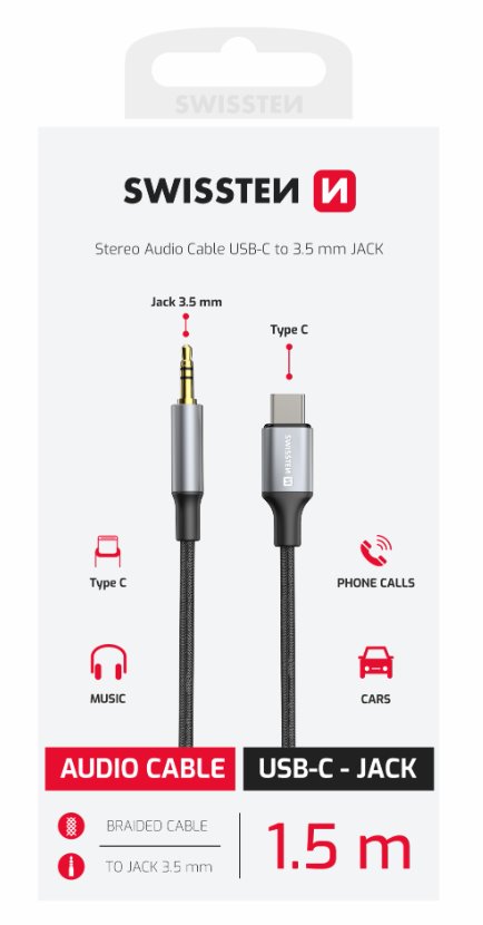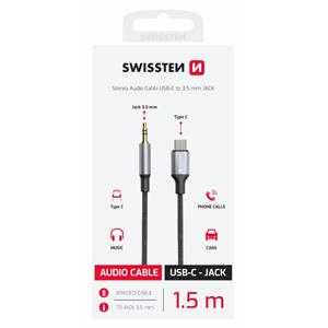 SWISSTEN AUDIO ADAPTÉR TEXTILE USB-C (samec) / 3,5 mm JACK (samec) 1,5M ČERNÝ (nahrazuje 73501303)