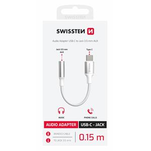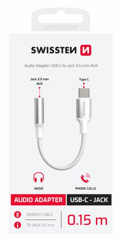 SWISSTEN AUDIO ADAPTÉR TEXTILE USB-C (samec) / 3,5mm AUX 0,15 M BÍLÝ (nahrazuje 73501302)