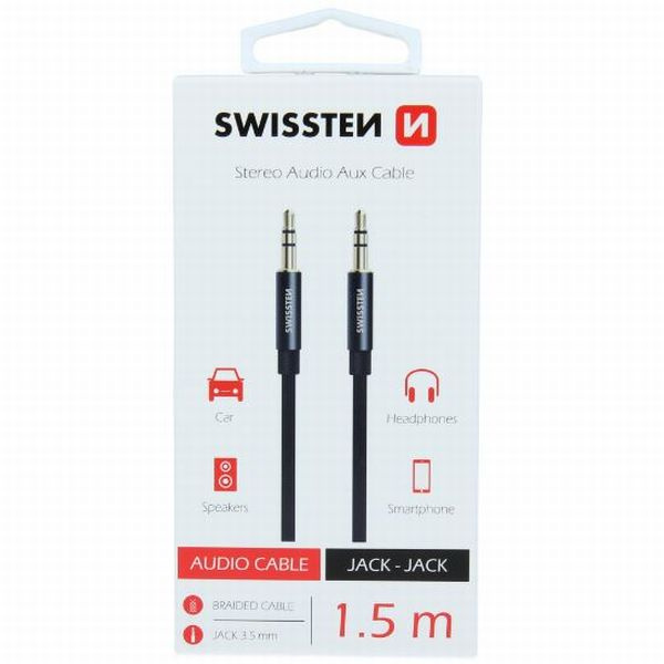 SWISSTEN AUDIO KABEL TEXTILE JACK - JACK 1,5 M ČERNÝ
