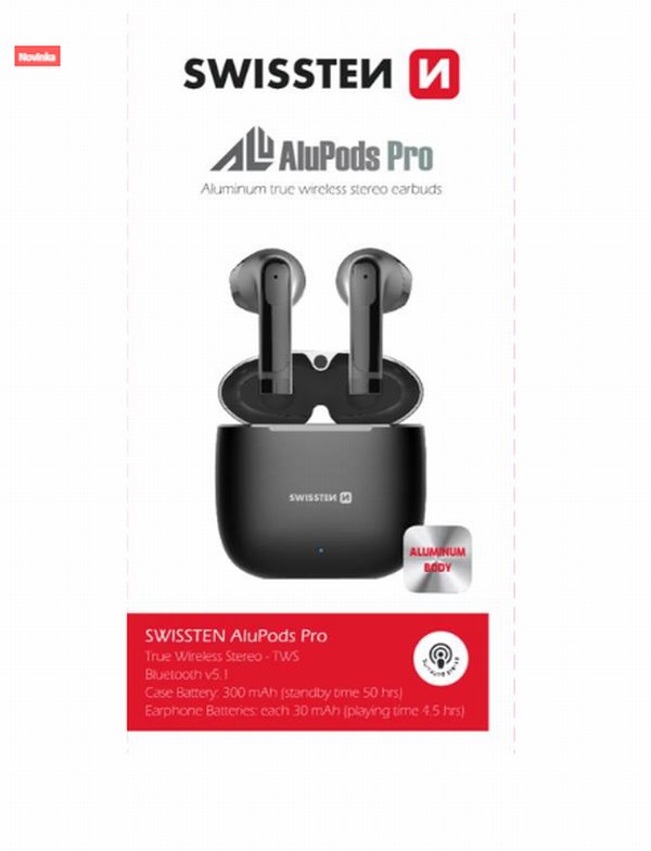 SWISSTEN BLUETOOTH TWS SLUCHÁTKA SWISSTEN ALUPODS PRO