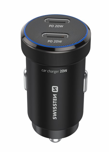 Kompaktní a výkonná autonabíječka s dvojicí USB-C portů a podporou PD 3.0. Umožňuje nabíjet dvě zařízení současně výkonem až 20W. Modré LED podsvícení usnadňuje připojení kabelu i při jízdě v noci.