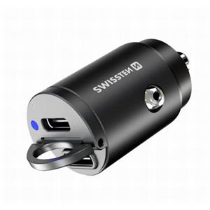 Nano autonabíječka SWISSTEN s výstupy 2x USB-C Power Delivery s celkovým výstupním výkonem 45W. Baleno v blistru SWISSTEN.