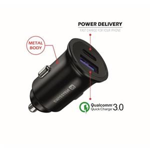 SWISSTEN CL ADAPTÉR POWER DELIVERY USB-C + QUICK CHARGE 3.0 36W METAL ČERNÝ