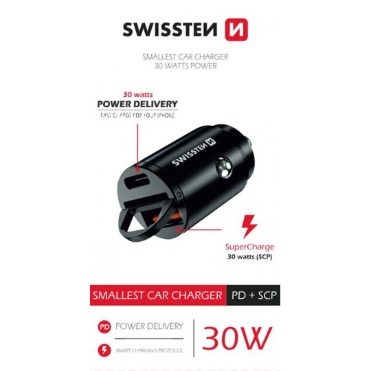 SWISSTEN CL ADAPTÉR POWER DELIVERY USB-C + SUPER CHARGE 3.0 30W NANO CERNÝ