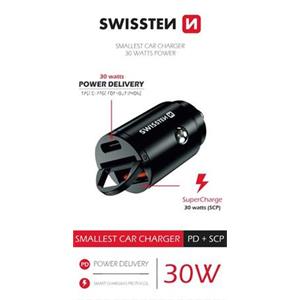 SWISSTEN CL ADAPTÉR POWER DELIVERY USB-C + SUPER CHARGE 3.0 30W NANO CERNÝ