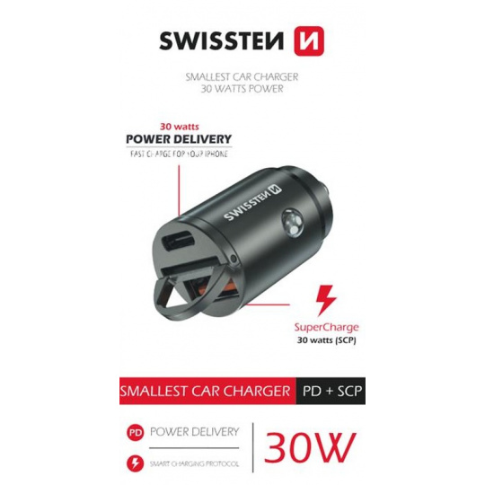 Ostatně iPhone s ní můžete díky podpoře extra rychlého nabíjení pro Apple Power Delivery na portu USB-C dobíjet i jen několik minut a dodáte mu energii na několik hodin práce. Extra výkonný je i port USB vybavený technologií SuperCharge, se kteoru lze nabíjet 30W telefon s Androidem. Provedení autonabíječky Swissten z odolného leštěného kovu ji předurčuje k použití v náročných podmínkách. Za tuto autonabíječku se ale díky jejímu atraktivnímu vzhledu nebudete muset stydět.