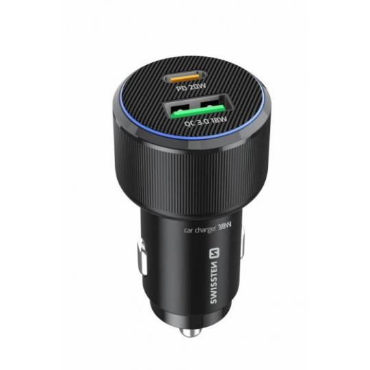 Praktická autonabíječka s podporou rychlého nabíjení PD 3.0 a QC 3.0, vybavená porty USB-C a USB-A. Součástí balení je 1m kabel USB-C/USB-C (3A, 60W, soft silicone) pro okamžité použití. Modré LED osvětlení v obvodu nabíječky usnadňuje připojení kabelu i při jízdě v noci.