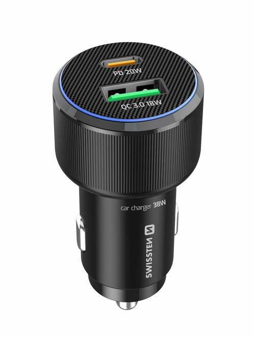 SWISSTEN CL ADAPTÉR USB-C PD + USB-A, 38W ČERNÝ