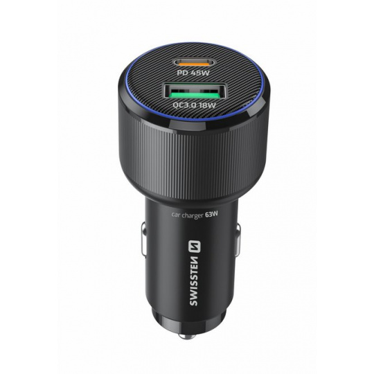 SWISSTEN CL ADAPTÉR USB-C PD + USB-A, 63W ČERNÝ