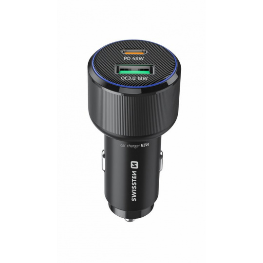 SWISSTEN CL ADAPTÉR USB-C PD + USB-A, 63W ČERNÝ + KABEL USB-C / USB-C, 1 M