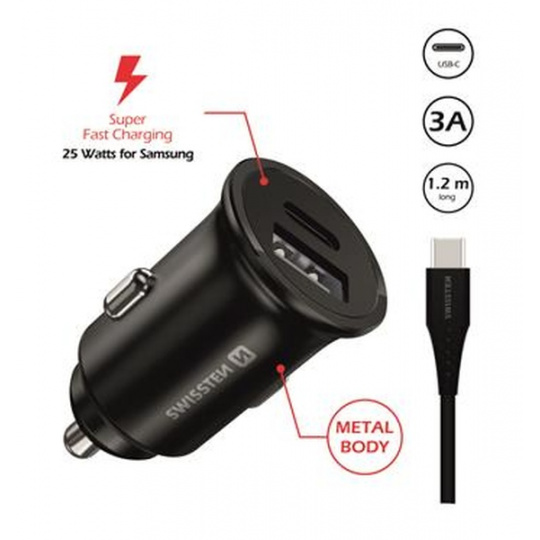 SWISSTEN CL PRO SAMSUNG SUPER FAST CHARGING 25W + KABEL USB-C/USB-C 1,2 M BLACK