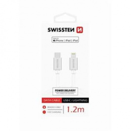 SWISSTEN DATA CABLE USB-C / LIGHTNING MFi TEXTILE 1,2M SILVER