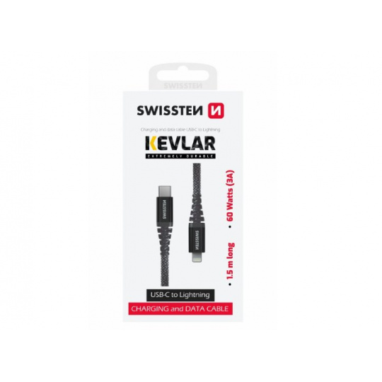 SWISSTEN DATOVÝ KABEL KEVLAR USB-C / LIGHTNING 1,5 M ANTRACIT