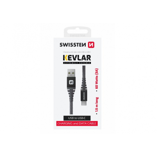 SWISSTEN DATOVÝ KABEL KEVLAR USB / USB-C 1,5 M ANTRACIT