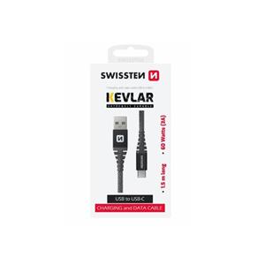 SWISSTEN DATOVÝ KABEL KEVLAR USB / USB-C 1,5 M ANTRACIT
