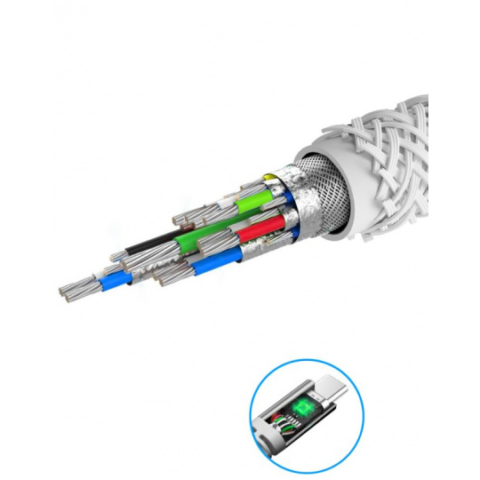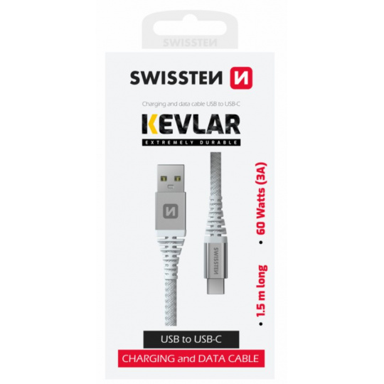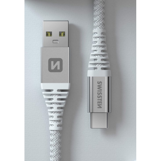 SWISSTEN DATOVÝ KABEL KEVLAR USB / USB-C 1,5 M BÍLÝ
