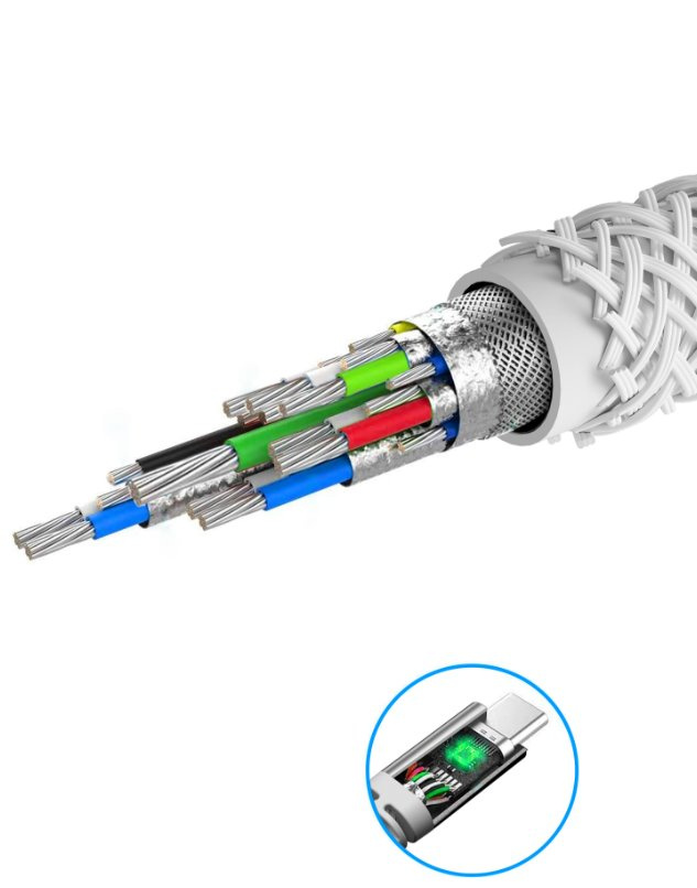 1,5 metru ultra odolná kevlarová konstrukce kabelu.