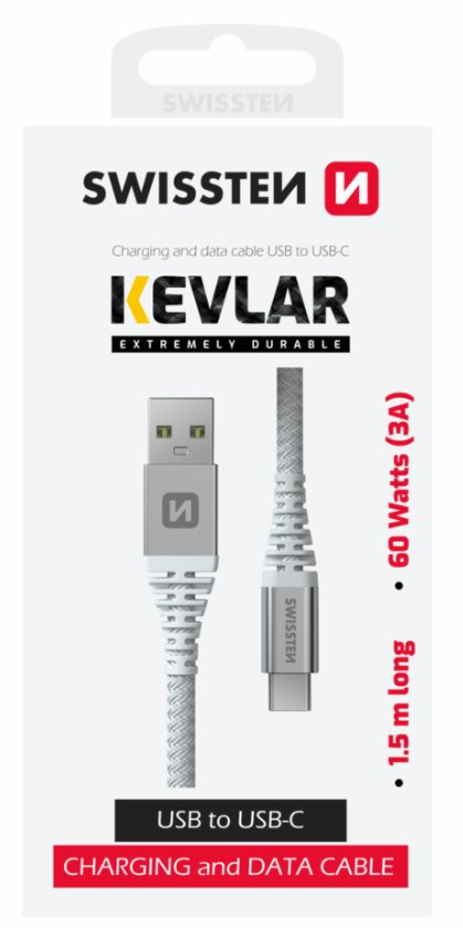 Rozlučte se s roztřepenými a selhávajícími kabely, které vás nechají na holičkách. Datový kabel Swissten je vyroben z kevlarového vlákna, které zajistí dlouhou životnost kabelů a předejde lámání kabelu.