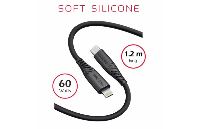 SWISSTEN DATOVÝ KABEL SOFT SILICONE USB-C / LIGHTNING 1,2 M 60W ČERNÝ