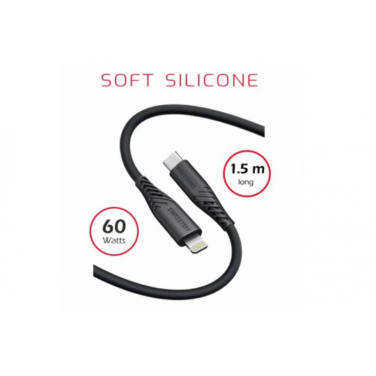 SWISSTEN DATOVÝ KABEL SOFT SILICONE USB-C / LIGHTNING 1,5 M 60W ČERNÝ