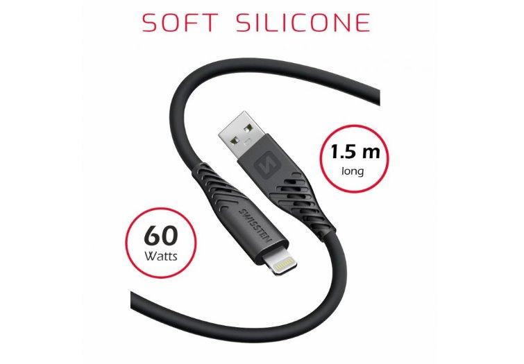 SWISSTEN DATOVÝ KABEL SOFT SILICONE USB / LIGHTNING 1,5 M 60W ČERNÝ