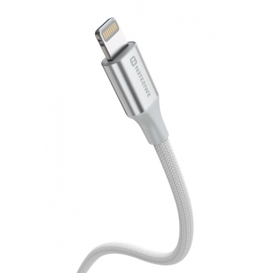 SWISSTEN DATOVÝ KABEL TEXTILE II USB-C / LIGHTNING 1,5 M BÍLÝ