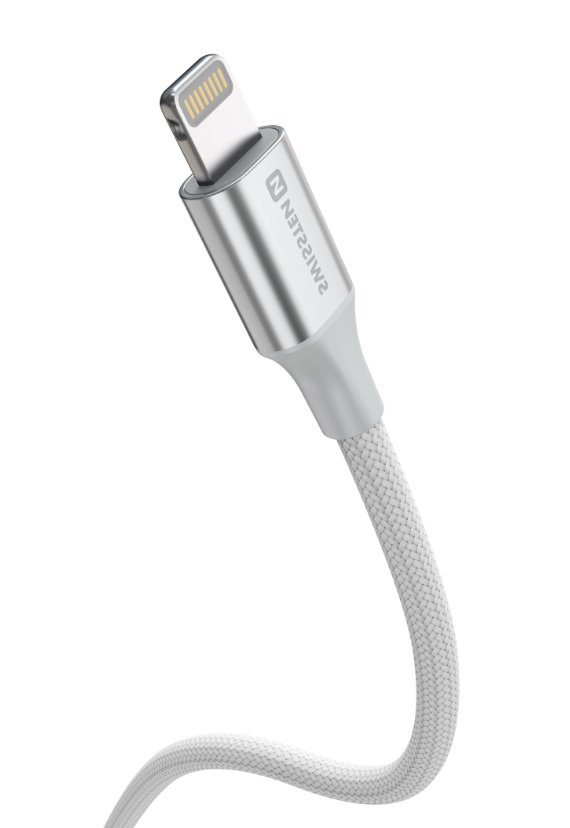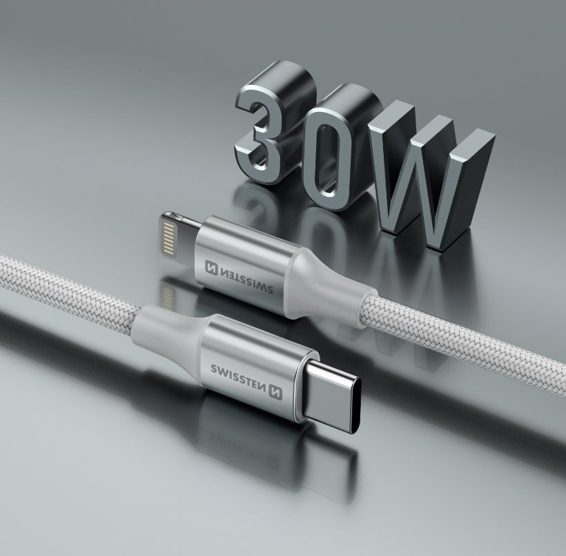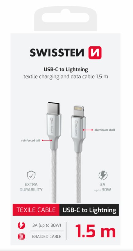 SWISSTEN DATOVÝ KABEL TEXTILE II USB-C / LIGHTNING 1,5 M BÍLÝ