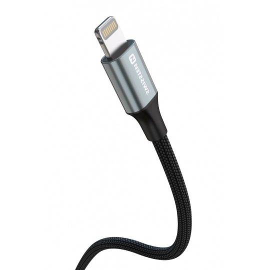 SWISSTEN DATOVÝ KABEL TEXTILE II USB-C / LIGHTNING 1,5 M ČERNÝ