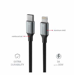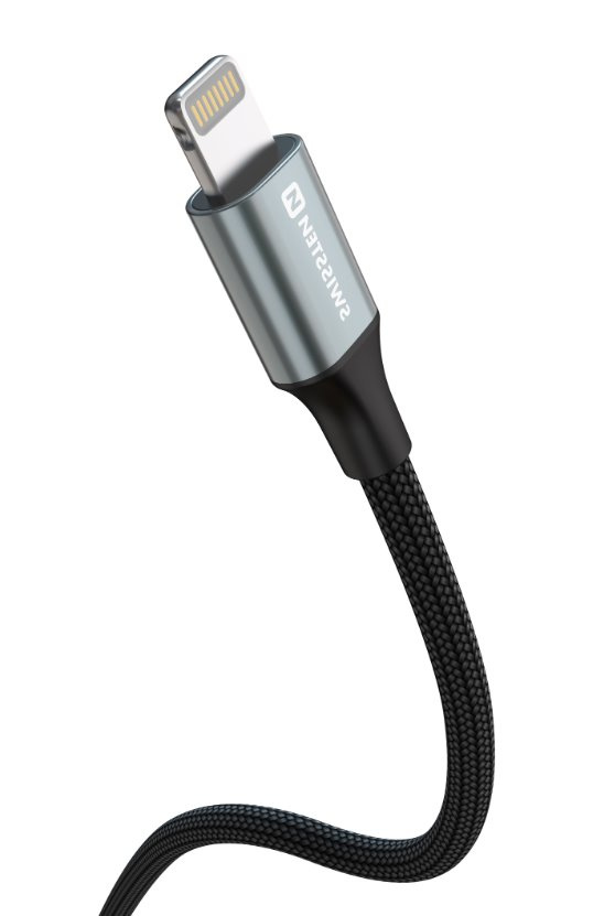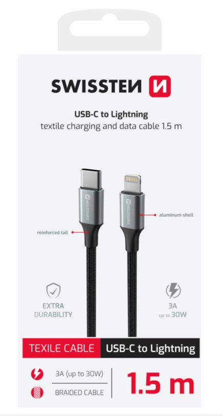 SWISSTEN DATOVÝ KABEL TEXTILE II USB-C / LIGHTNING 1,5 M ČERNÝ