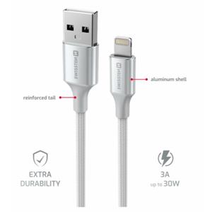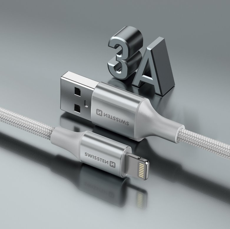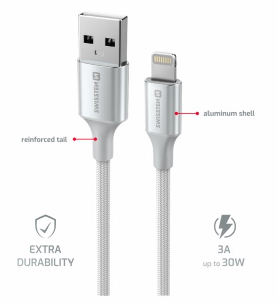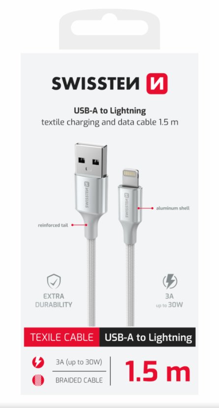 SWISSTEN DATOVÝ KABEL TEXTILE II USB / LIGHTNING 1,5 M BÍLÝ