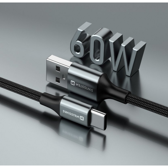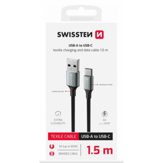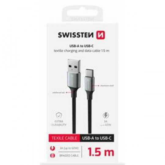 SWISSTEN DATOVÝ KABEL TEXTILE II USB / USB-C 1,5 M ČERNÝ