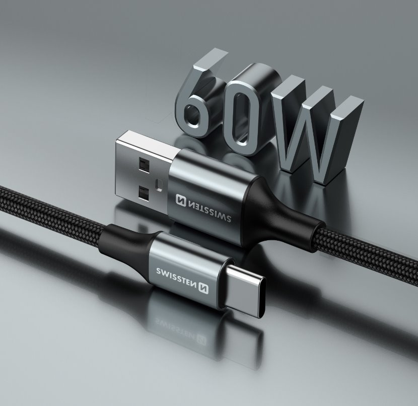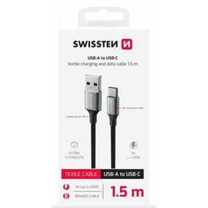 SWISSTEN DATOVÝ KABEL TEXTILE II USB / USB-C 1,5 M ČERNÝ