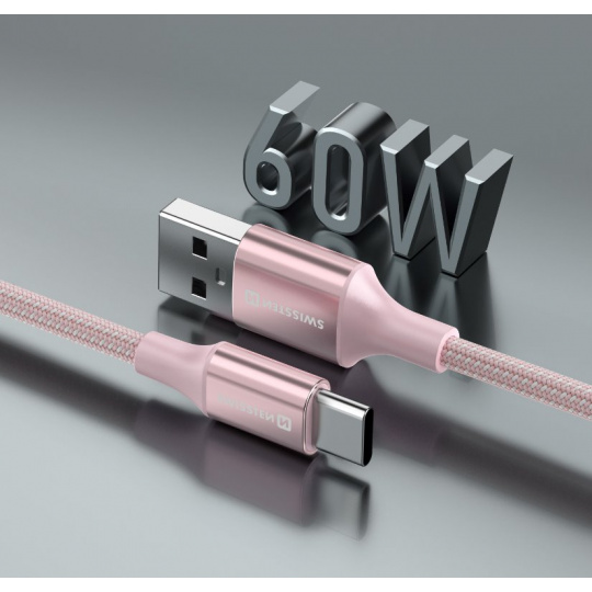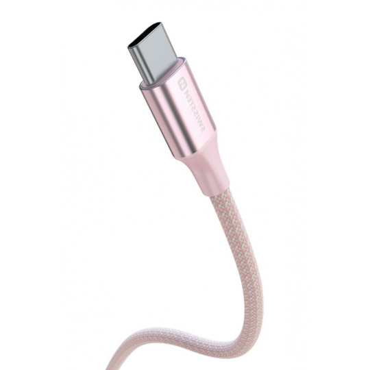 SWISSTEN DATOVÝ KABEL TEXTILE II USB / USB-C 1,5 M RŮŽOVÝ