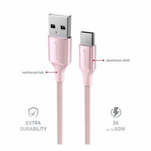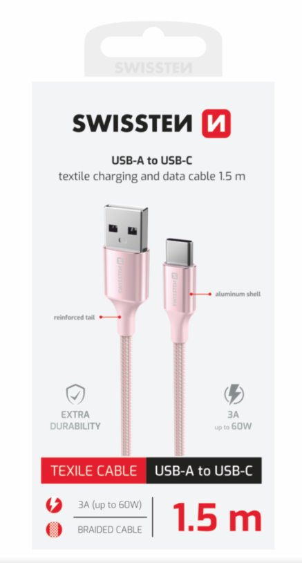 SWISSTEN DATOVÝ KABEL TEXTILE II USB / USB-C 1,5 M RŮŽOVÝ