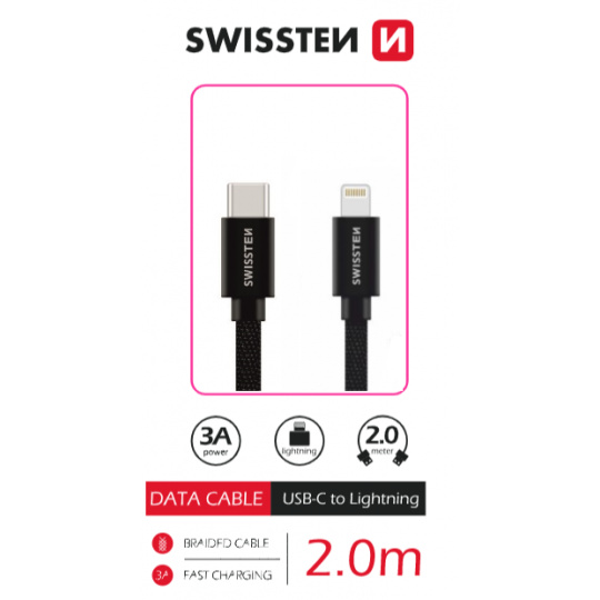 SWISSTEN DATOVÝ KABEL TEXTILE USB-C / LIGHTNING 2,0 M ČERNÝ