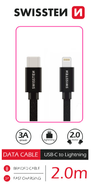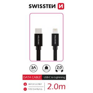 SWISSTEN DATOVÝ KABEL TEXTILE USB-C / LIGHTNING 2,0 M ČERNÝ